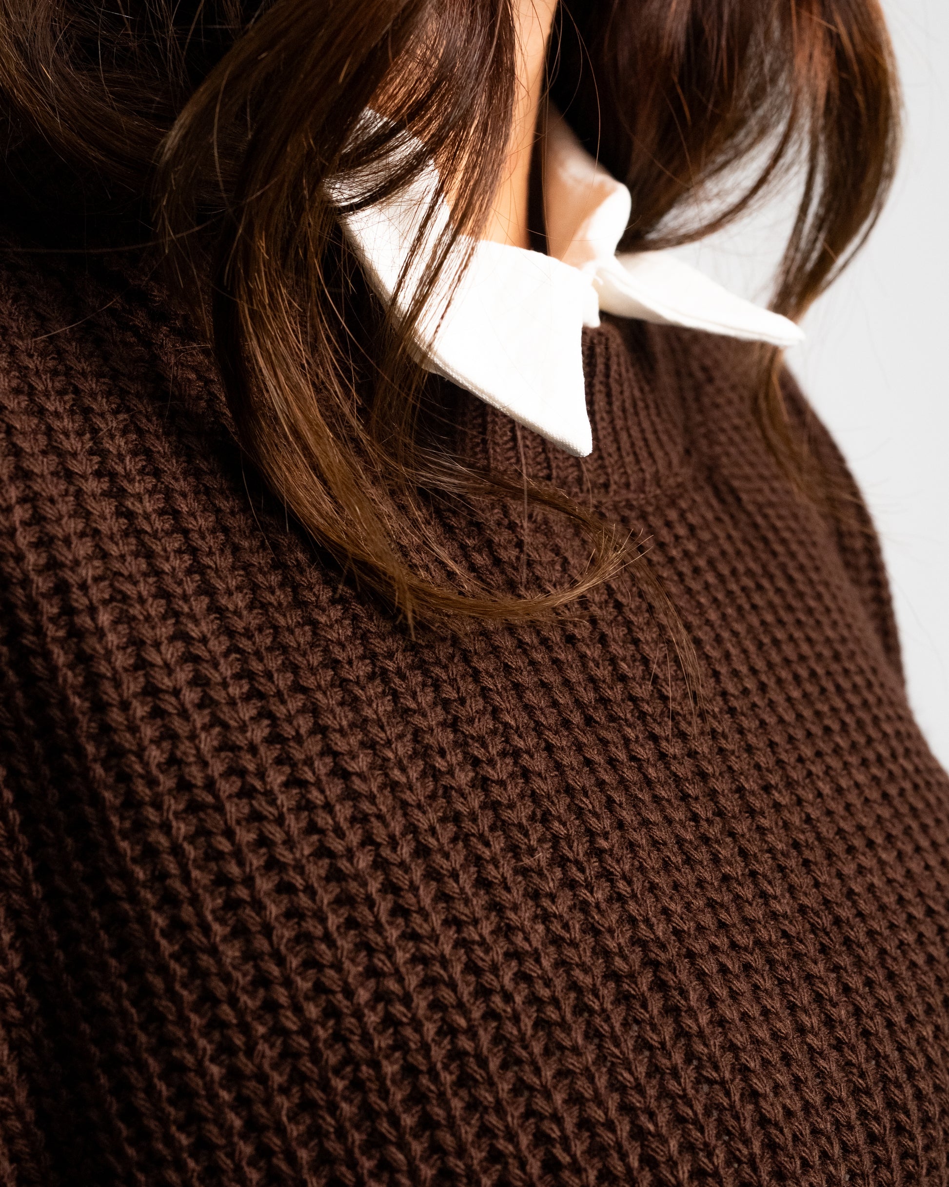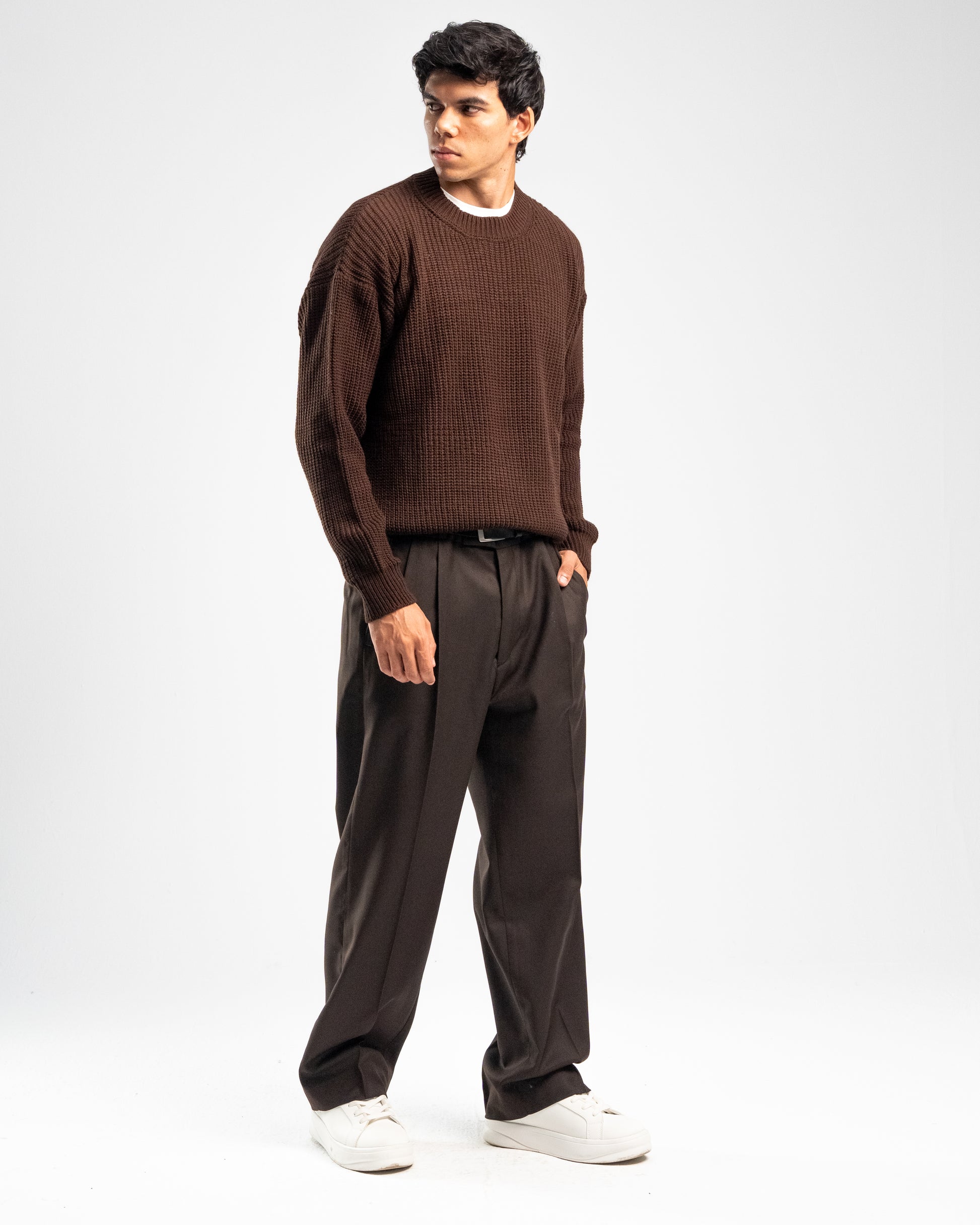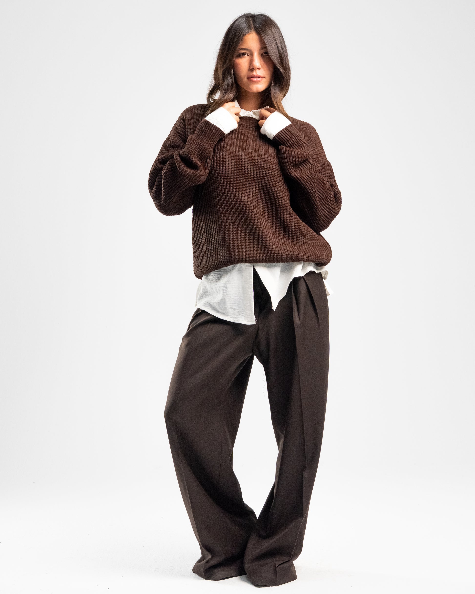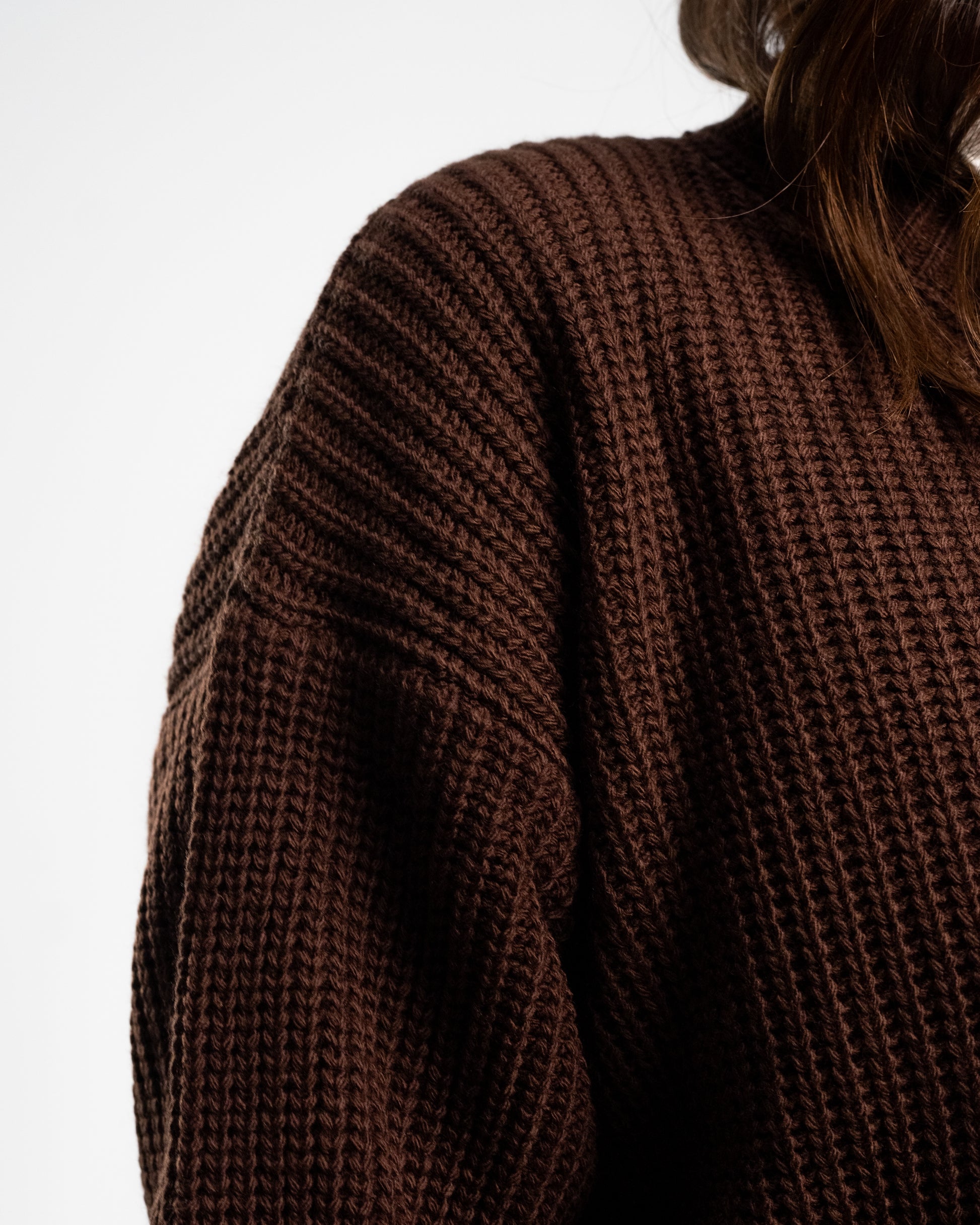 Willian (182 cm) and Mariem (173 cm) are both wearing the Mocha Crewneck in One Size.